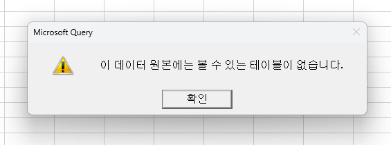 1. "이 데이터 원본에는 볼 수 있는 테이블이 없습니다."라고 뜨는데 해결책이 있을까요?