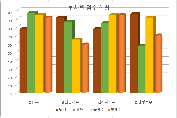 + 버튼 누르고 차트 제목 추가(차트 위)하여 문제에 제시된 대로 설정하였습니다.