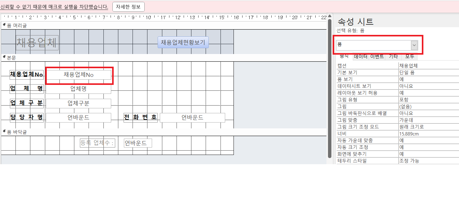 폼을 클릭하면 저기에 텍스트 이름이 떠야 하는데