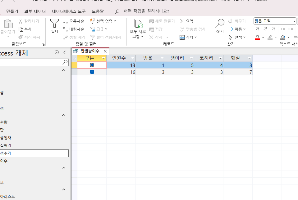 그림상으로는 왜 다르게 나오는지 알 수가 없네요. 실습한 액세스 파일을 올려주세요. 파일을 열어 직접 확인해야 원인을 알 수 있을 듯 합니다.