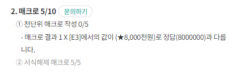 -매크로 결과 1 X [E3]에서의 값이 (★ 8000천원)로 정답(8000000)과 다릅니다.