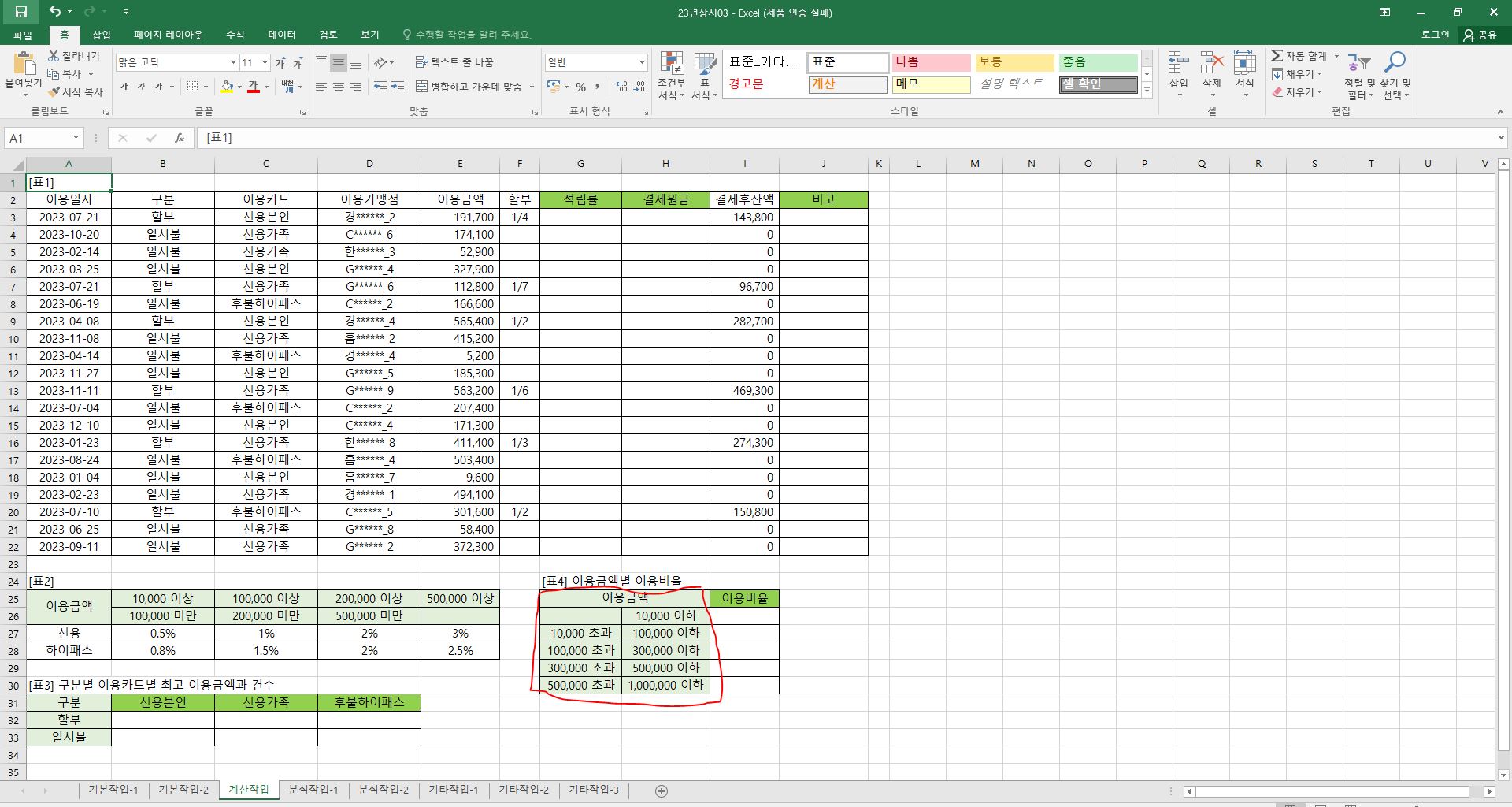 표4의 이용금액 범위가 왜 H26:H30인지 잘 모르겠습니다.