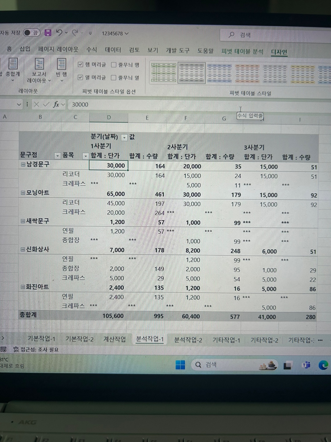 -피벗 테이블 결과 X [D2]에서의 값이 (분기(날짜))로 정답(날짜)과 다릅니다.
