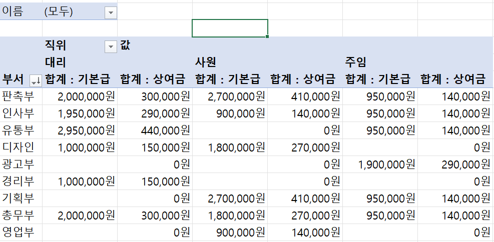 분석작업 피벗테이블 문의