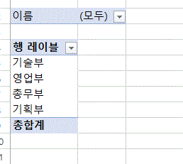 -피벗 테이블 결과 X [A6]에서의 값이 (영업부)로 정답(기획부)과 다릅니다.
