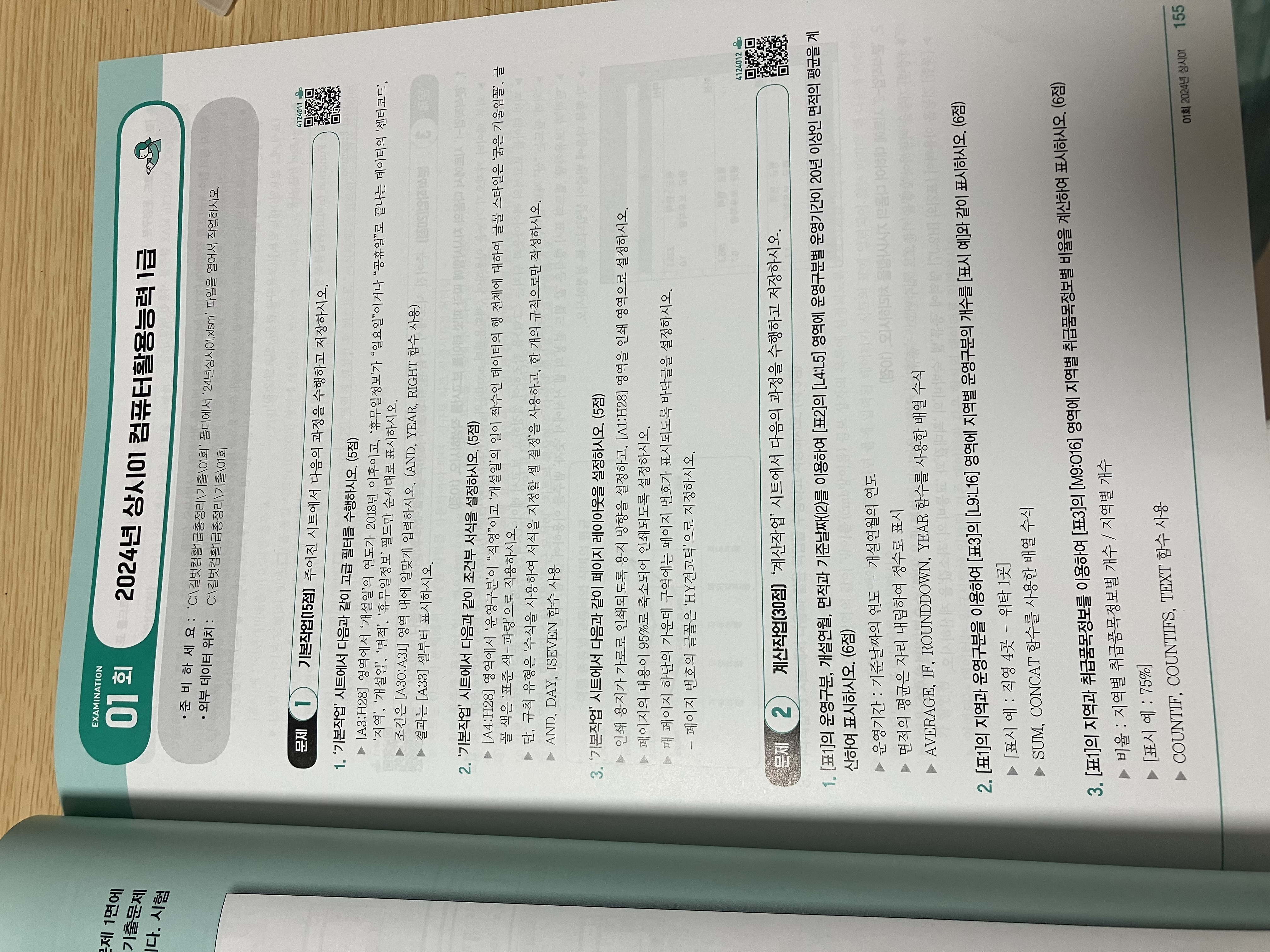 155페이지가 2024년 상시1 컴활1급 액셀인데