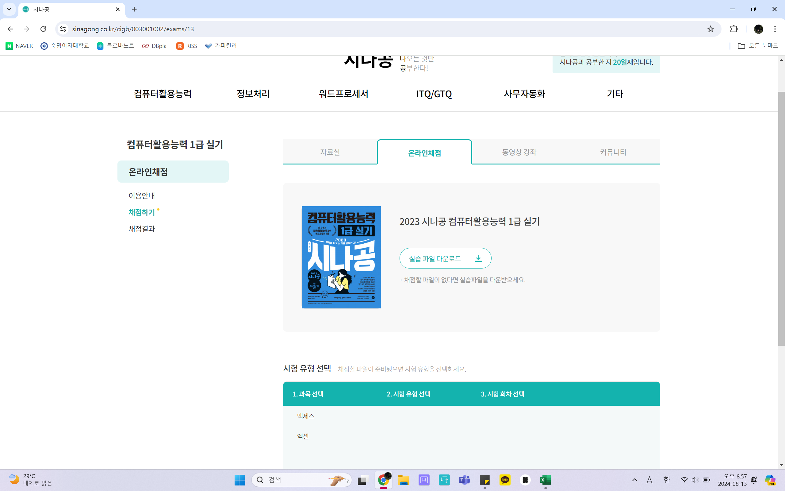 시나공 카페에서 [컴퓨터활용능력]-[2급 실기]-[채점하기]를 차례로 다시 클릭하면 다시 모두 표시됩니다.