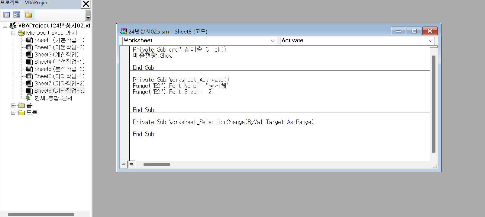 -워크시트 활성화 기능 구현 X [Worksheet_Activate] 매크로가 정답과 다릅니다.