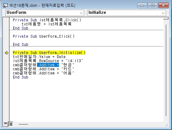 "컴파일 오류입니다."라는 문구가 계속 발생합니다.
