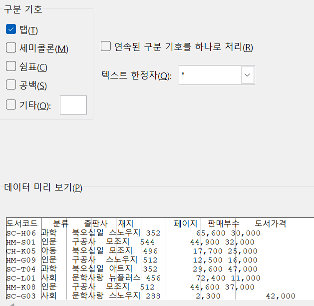 그리고 해당 회차 피벗테이블 문제에서 텍스트 파일 가져올 때 탭으로 구분하라고 되어있는데 어느걸로 구분해도 열구분이 엇갈려서 안되는데 파일 자체가 잘못된 건가요?