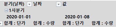 날짜를 그룹화 하면 피벗테이블에 분기(날짜)로 표시가 됩니다.