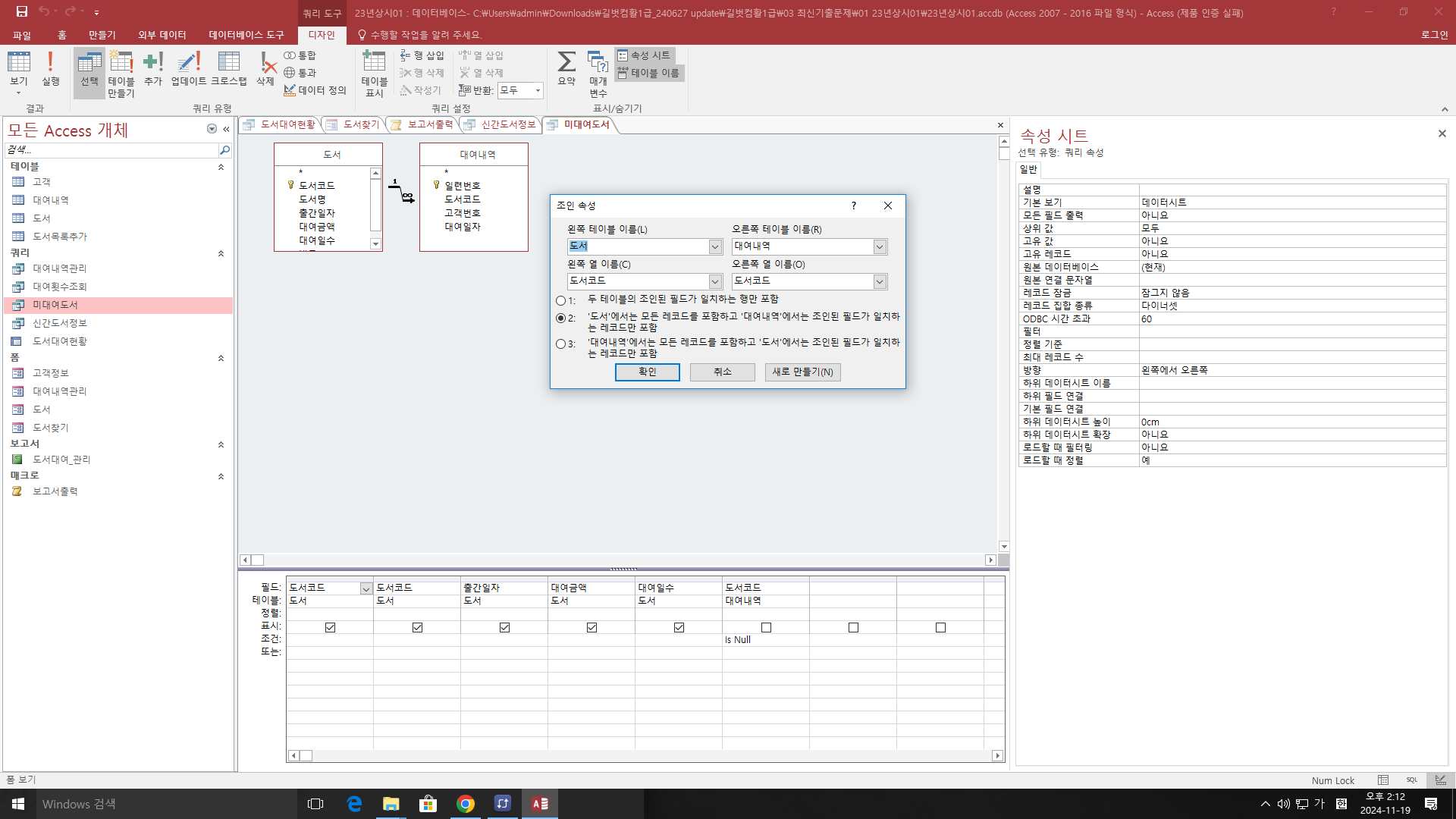 -쿼리 비교 X 1번째 필드 값(Expr1000)가 정답(도서코드)과 다릅니다.