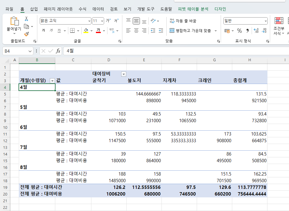 -피벗 테이블 결과 X [B3]에서의 값이 (개월(수령일))로 정답(수령일)과 다릅니다.