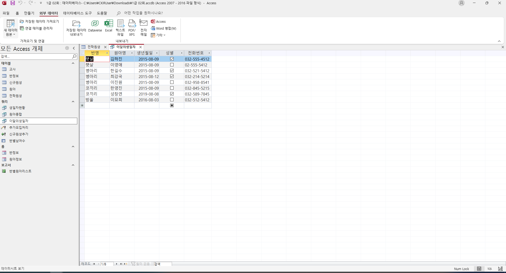 문제 4-3. 이달의생일자 쿼리 7/7