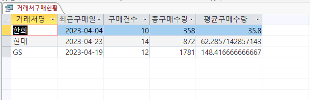 거래처구매현황 쿼리 질문