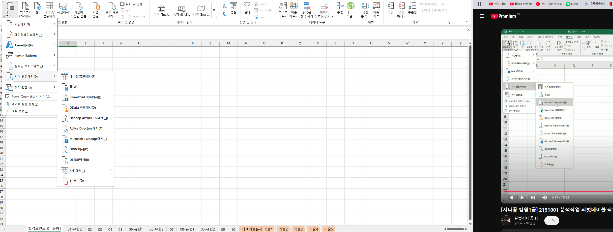 데이터 가져오기에서 제 화면처럼 쿼리에서 가져오기가 안떠요
