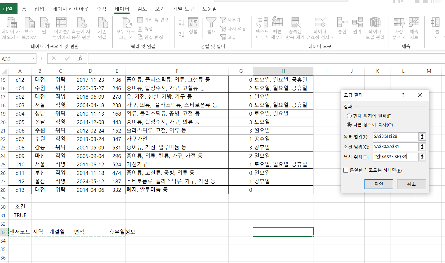 틀리게 쓴 것도 없고 고급필터 범위도 모두 맞게 작성했는데