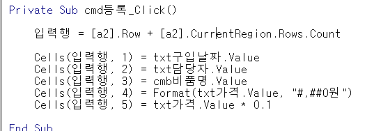 -폼 실행 X 마지막 행에 데이터가 입력되지 않았습니다.
