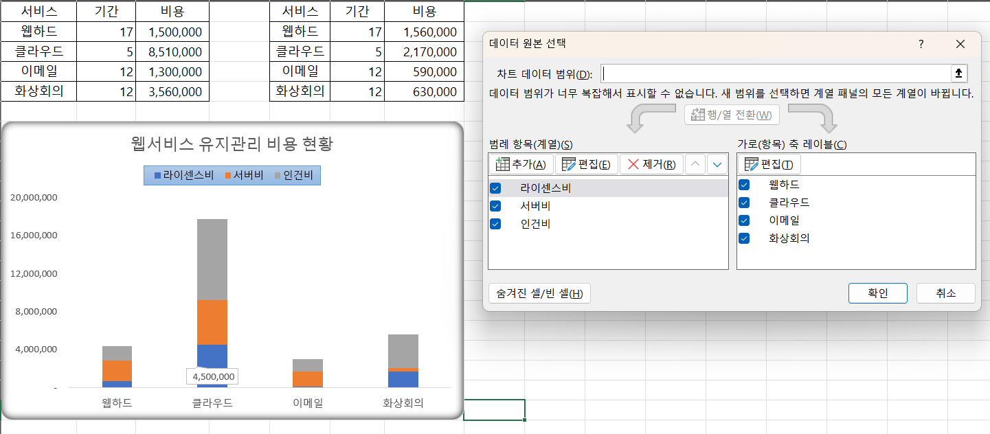 교재의 그래프와 똑같고 유튜브 영상과 비교해봐도 데이터 계열이 똑같은데