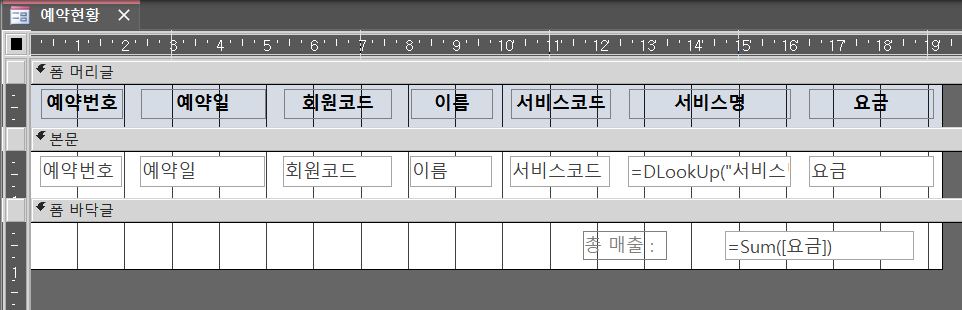 -컨트롤 캡션 속성 X [예약현황]의 폼_바닥글0에 총 매출 :이 없습니다.