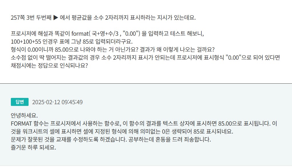 워크시트에 표시형식을 미리 지정하는 것 외에는 다른 방법이 없어 소수 2자리까지 표시하라는 지시사항을 교재에서 삭제하려고 했습니다.