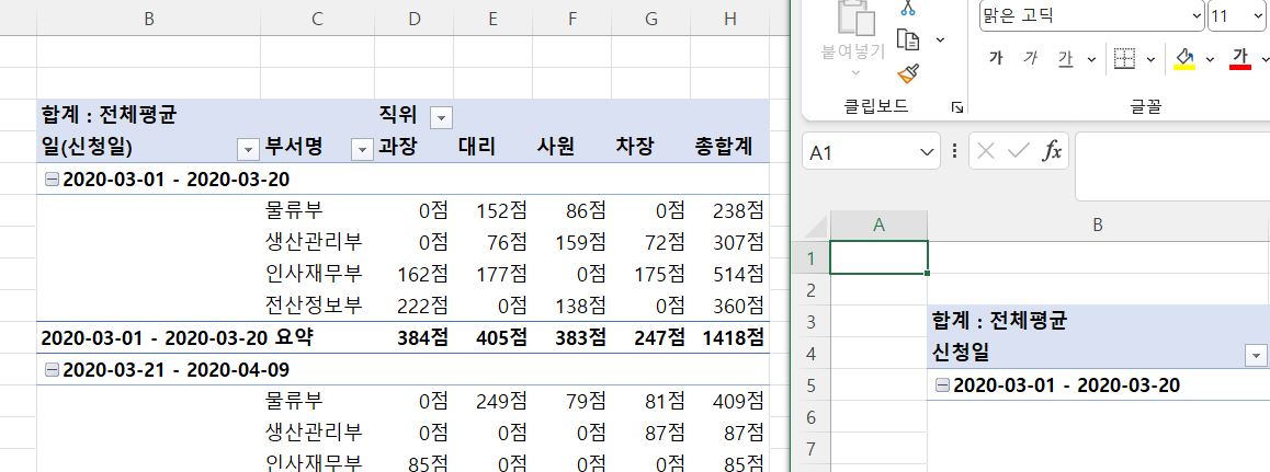-피벗 테이블 결과 X [B4]에서의 값이 (일(신청일))로 정답(신청일)과 다릅니다.