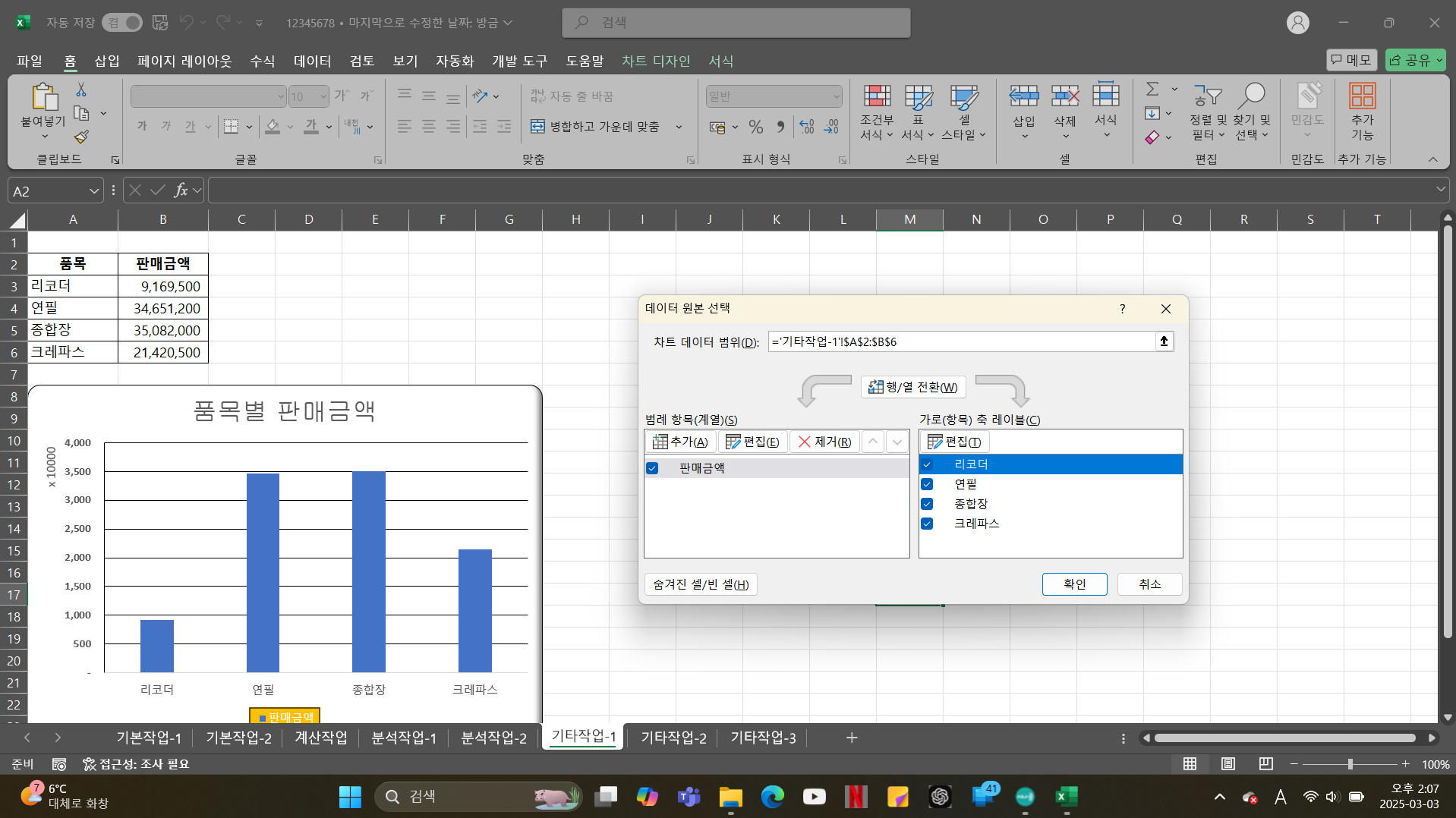 다음과 같이 계열 수정을 했는데 채점하고 나니 틀렸다고 나오네요!!