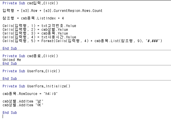 -폼 실행 X 마지막 행에 데이터가 입력되지 않았습니다.