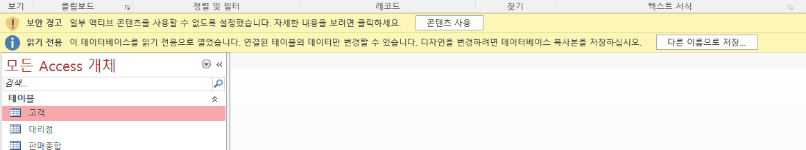 보안 경고줄에 표시된 <콘텐츠 사용>을 클릭한 후 해보시기 바랍니다.