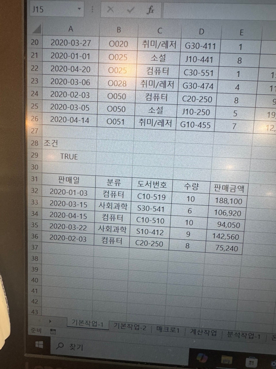 판매일, 분류, 도서번호, 수량, 판매금액을 일일이 기록하지 않고