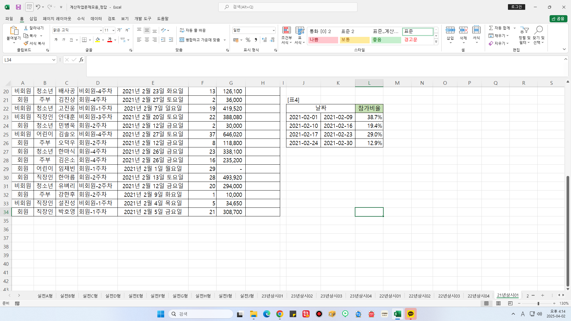 계산작업모음 p154 21년상시01 문제4번 정답확인부탁드립니다.