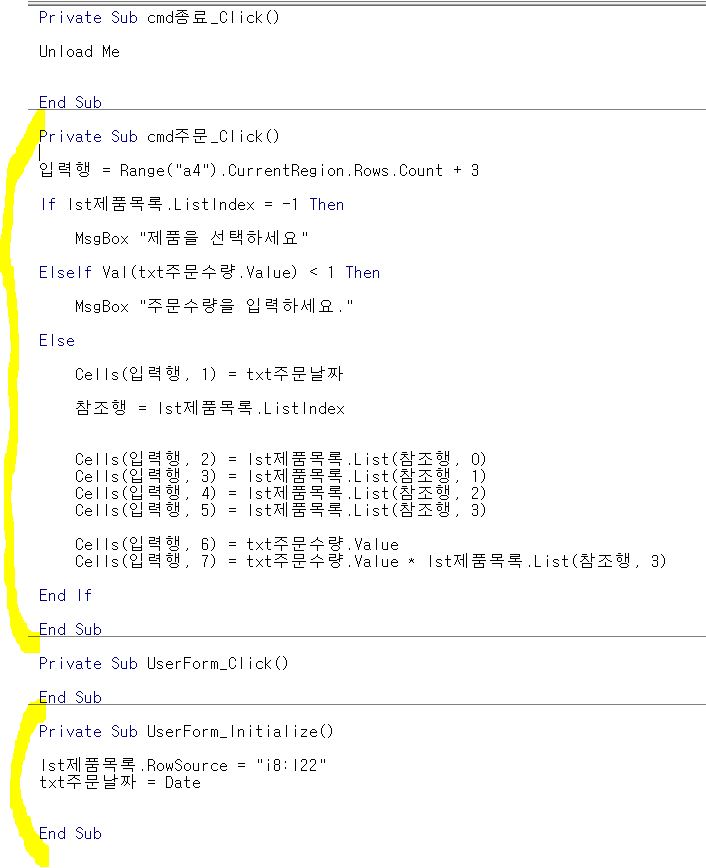 -주문 프로시저 X [cmd주문_Click] 매크로가 정답과 다릅니다.