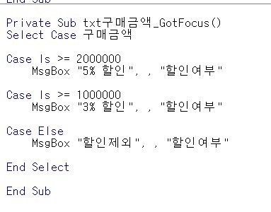 -이벤트 프로시저 X [컨트롤 GotFocus 모듈]의 txt구매금액 값이 정답과 다릅니다.