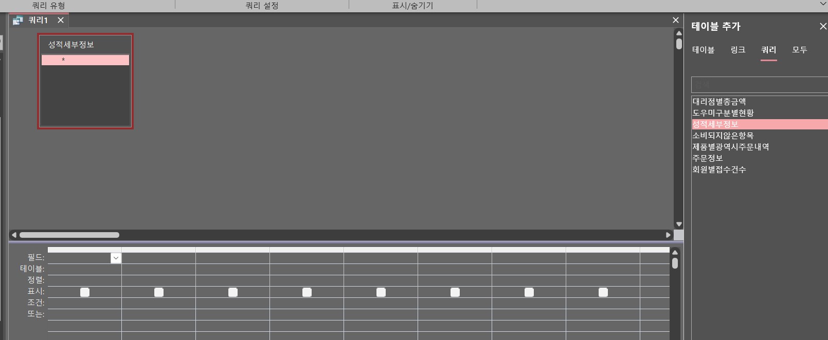 <성적세부정보> 쿼리 더블 클릭 시, 데이터 없음.