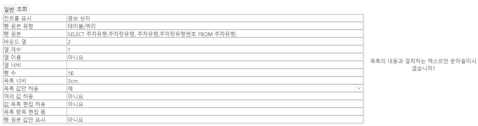 부록책 222쪽 2. <건물주차현황>테이블의 주차유형 필드에 조회속성 설정하기