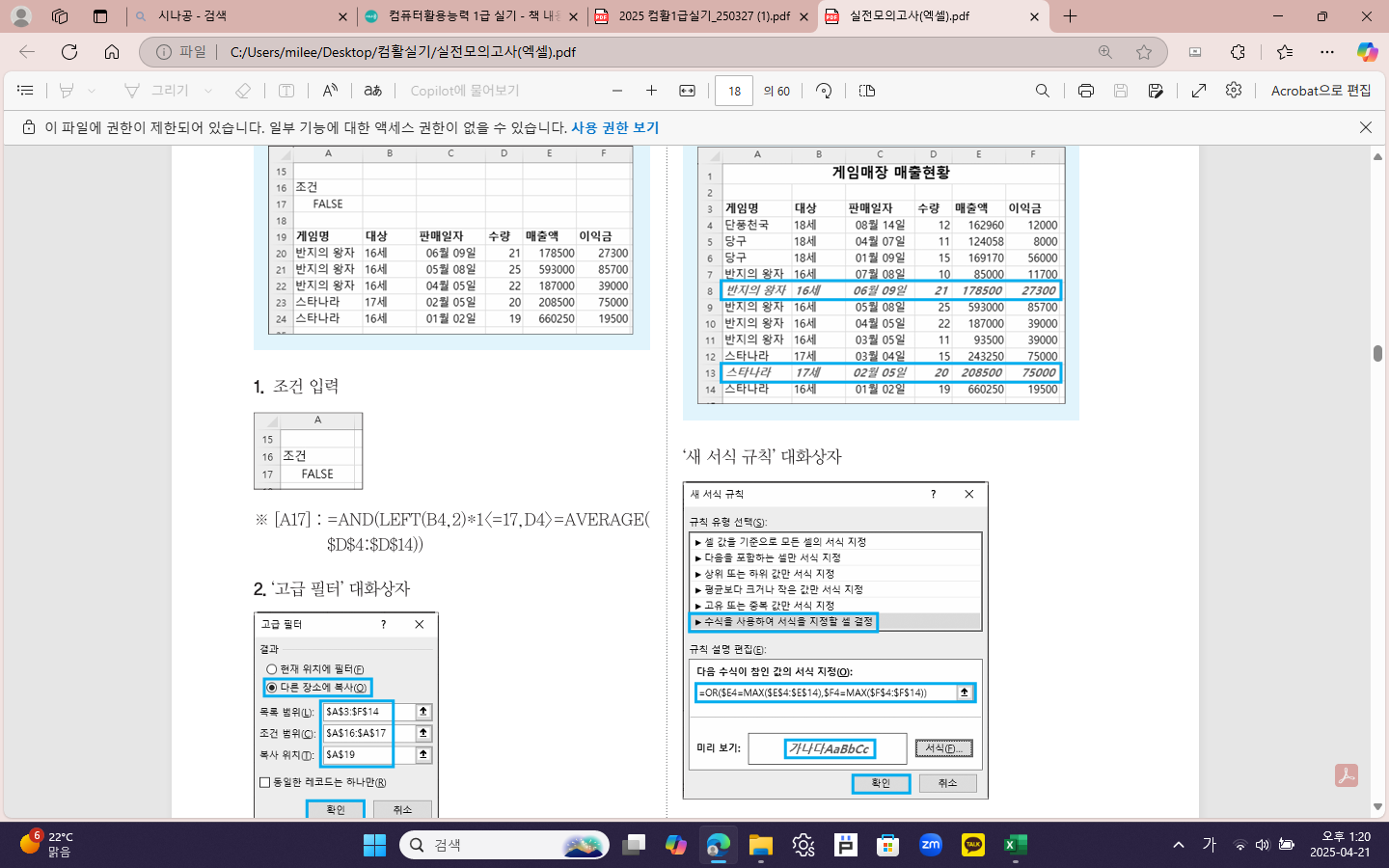 엑셀 실전모의고사 G형의 1-2문제의 정답이 PDF에 저장된 답과 엑셀로 만들어진 답이 다릅니다.