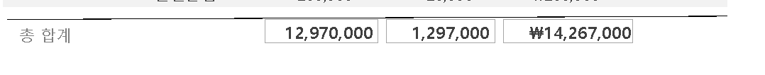 텍스트 상자를 삽입하면 같이 딸려오는 레이블에 총 합계를 적어서 배치해는데