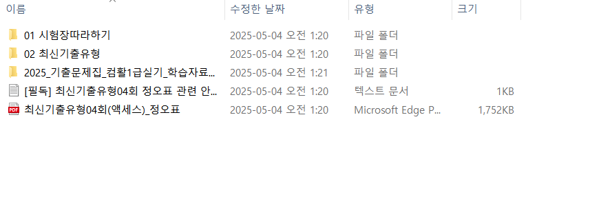 길벗컴활1급기출.exe 파일에 들어 있는 데이터가 모두 설치된 것입니다.