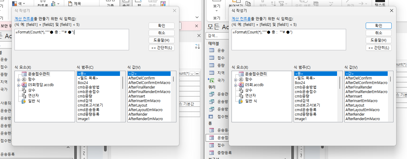 -컨트롤 원본 속성 X [txt접수건수]의 컨트롤 속성 원본 값 (=Format(Count(*)