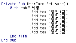-초기화 프로시저 X UserForm_Initialize이 없습니다.