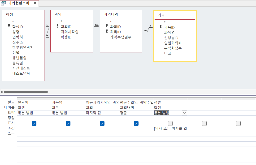 471쪽 4-5문제: 저는 최근과외시작일을 마지막값 , 매개변수값을 묶는 방법으로 설정했는데 값은 똑같이 나왔는데 이럴땐 정답 처리 될까요?