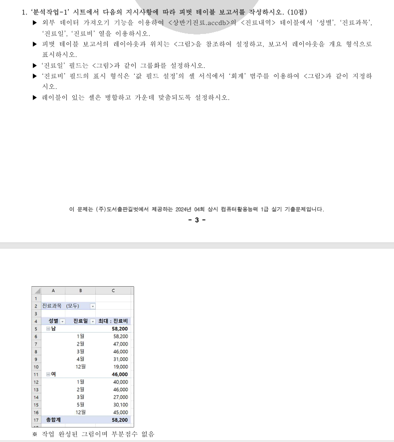 피벗테이블 행의 '진료일'이 답처럼 안 나오고 '개월(진료일)'로 나옵니다.