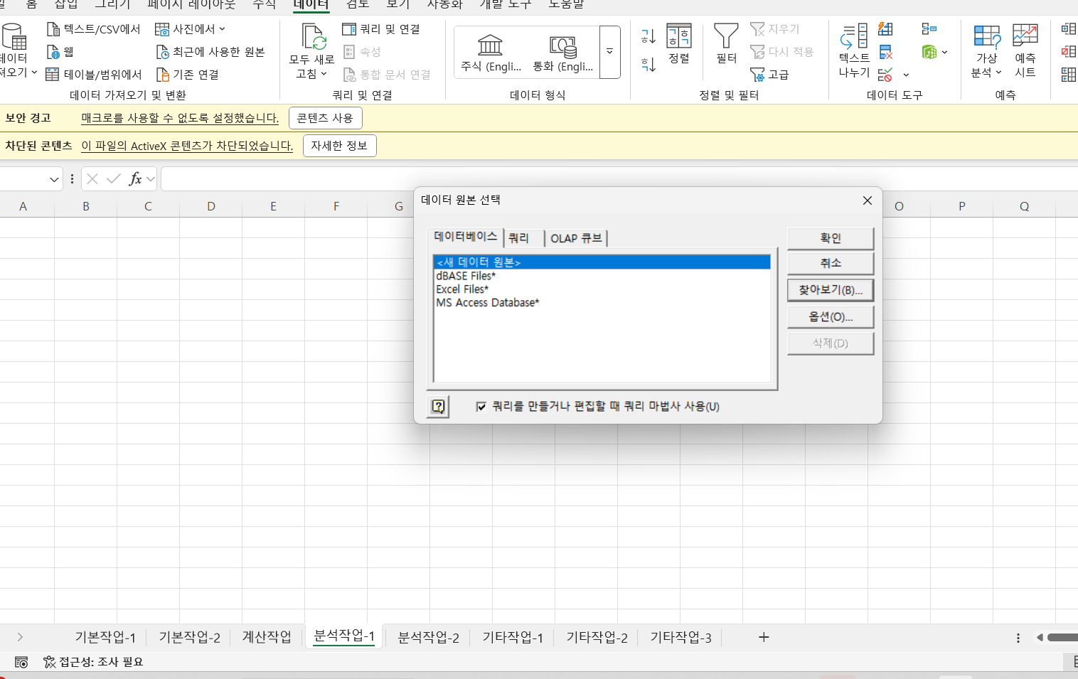 풀이에서 클릭하는 쿼리가 없는 경우 어떻게 해야하나요? 저렇게 뜬 경우 어디로 가져오기 해야하나요ㅠㅠㅠㅠㅠ 바탕화면, 폴더에 저장해도 쿼리에서는 안 보여요