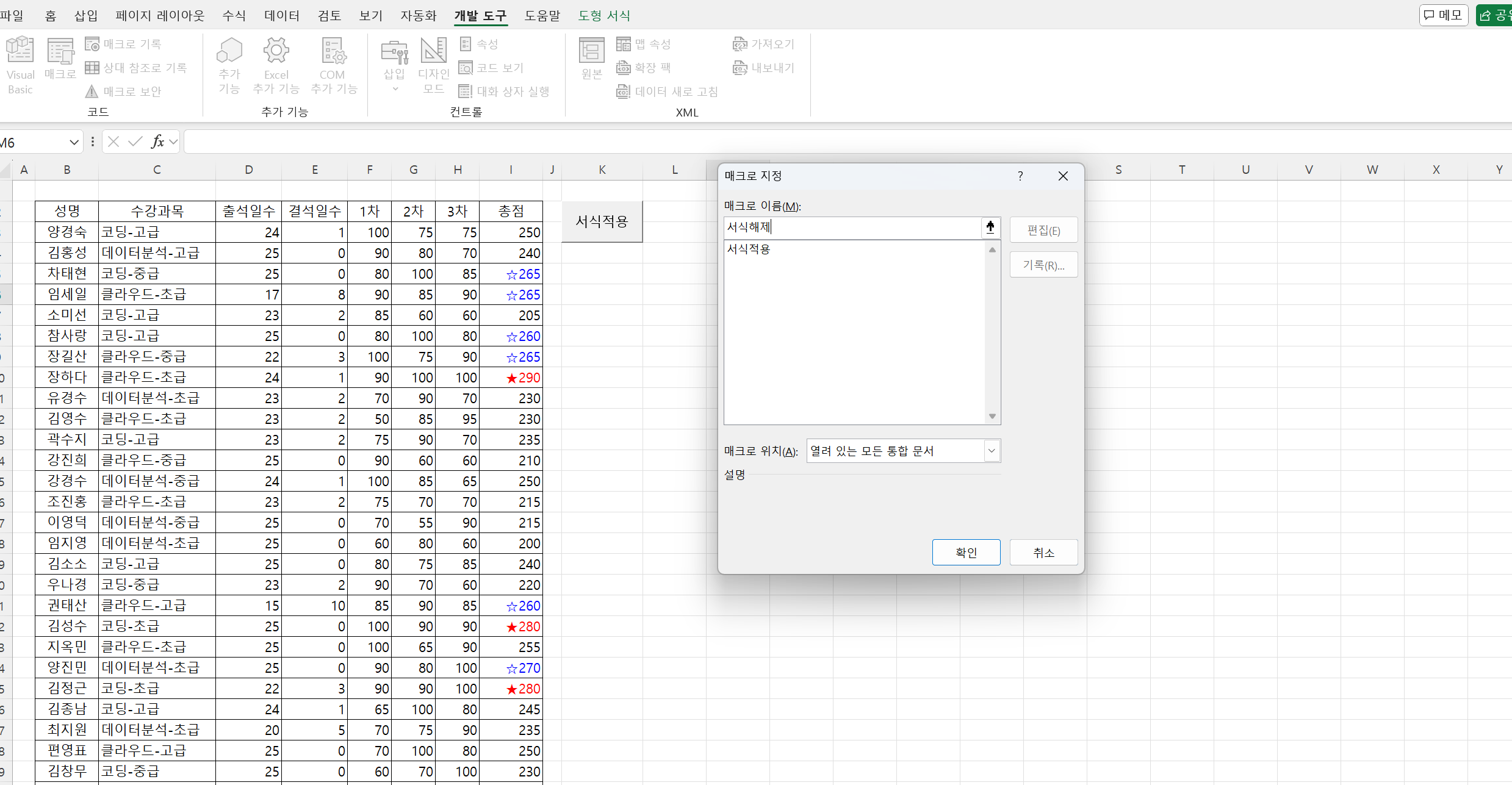 엑셀 양식컨트롤-단추-매크로 기록 버튼 안눌림