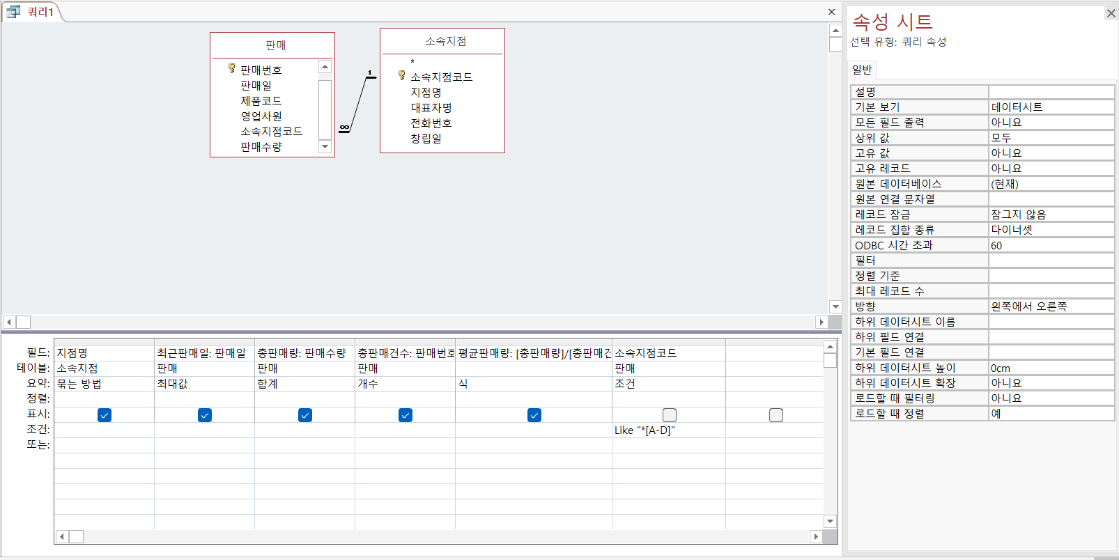 그림상으로는 결과가 다르게 나오는 원인을 알 수가 없네요. 실습한 액세스 파일을 올려주세요. 파일을 직접 열어 확인해야 결과가 다르게 나오는 원인을 알 수 있을 듯 합니다.