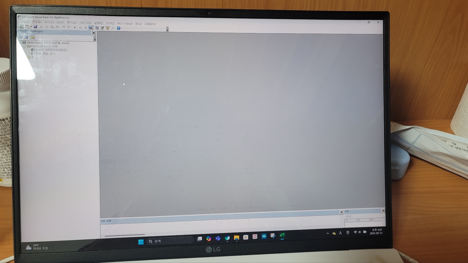 안녕하세요. 제가 프로시저 작성 문제 연습할려고 하는데 판매입력 단추를 누르면 private sub 판매입력_click() end sub 이 코드가 나와야 하는데 저는 그림과 같이 단추를 누르면 빈 화면이 뜨더라고요. 어떻게 해결하는지 알려주실 수 있을까요? 만약에 답변으로도 해결이 안된다면 어디에 문의하면 되는지 함께 알려주시면 감사합니다.