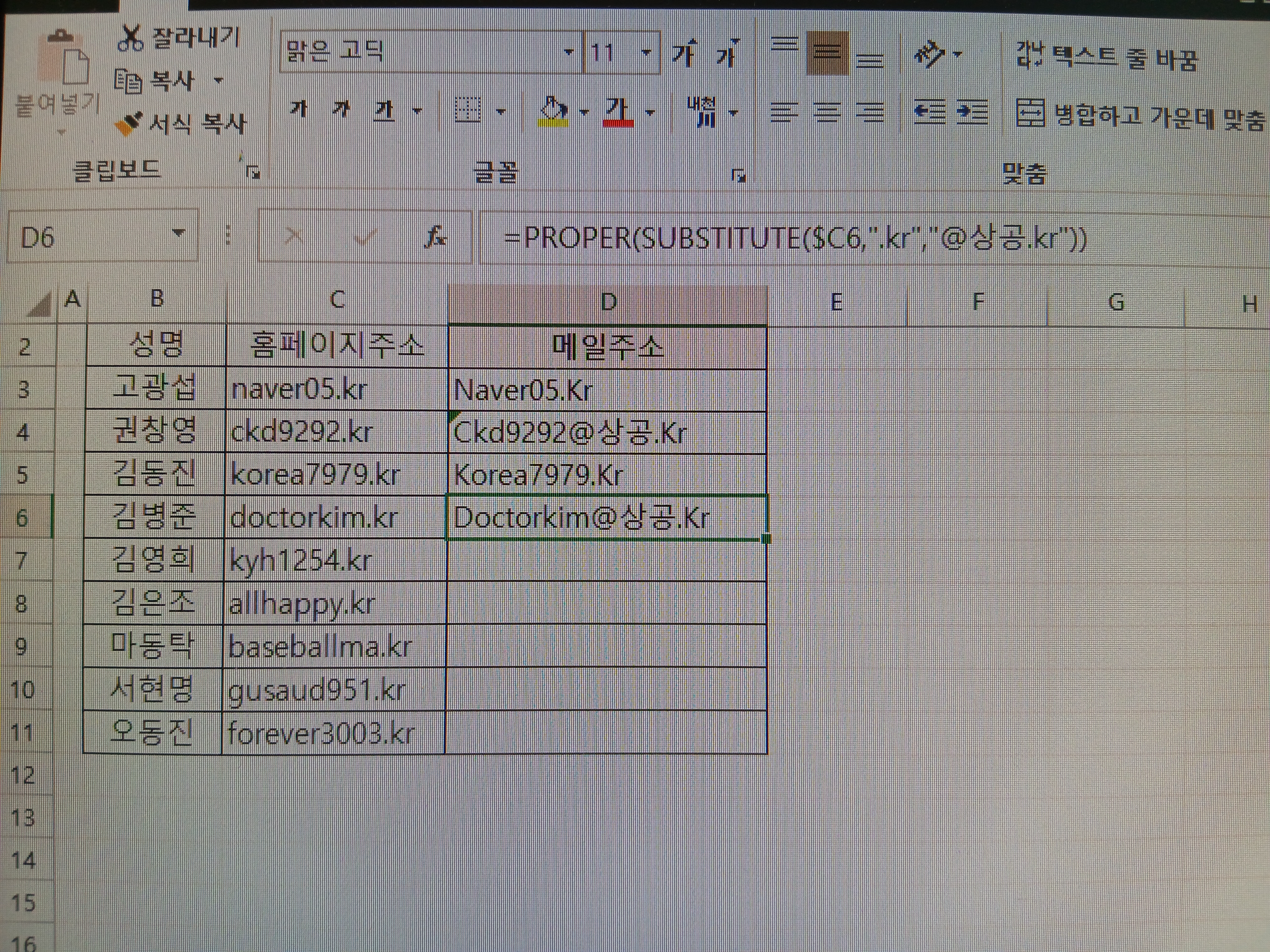 PROPER 함수와 SUBSTITUTE함수의 순서를 바꿔야 원하는 정답이 나옵니다