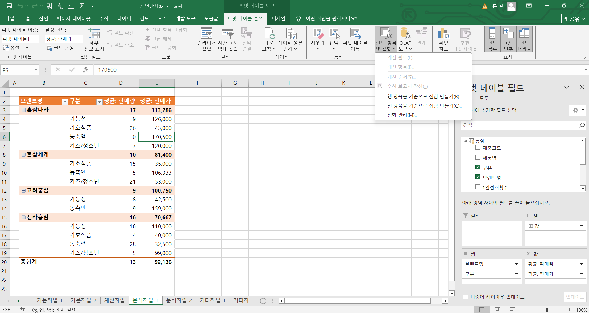 2025년 상시02 컴활 1급 문제3 분석작업