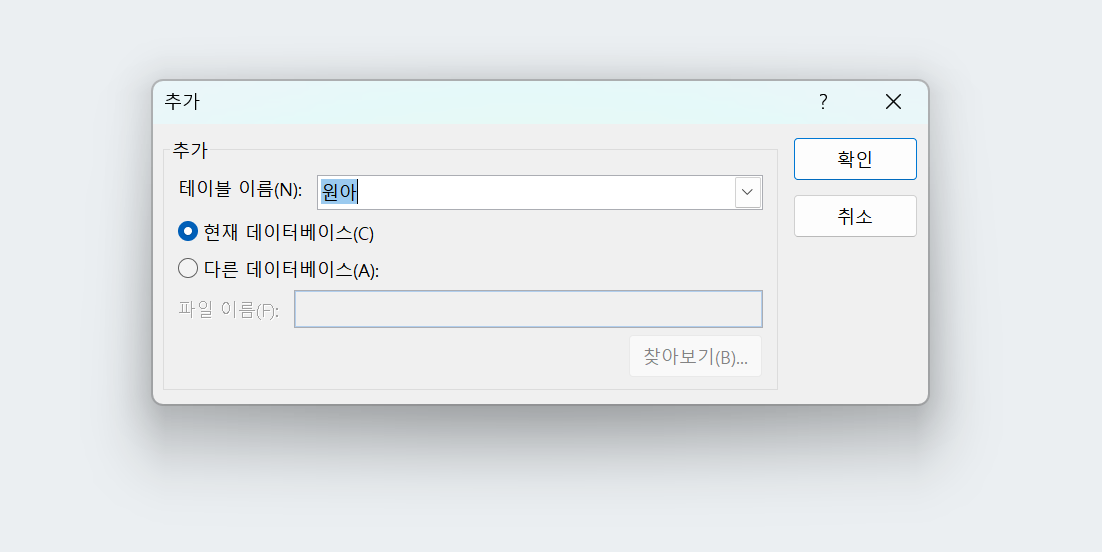 쿼리 추가 유형에 대한 설명이 부족합니다. 추가 클릭 후 어떤 테이블을 선택해도 필드에 추가되는 항목이 없습니다. 과정이 어떻게 되나요