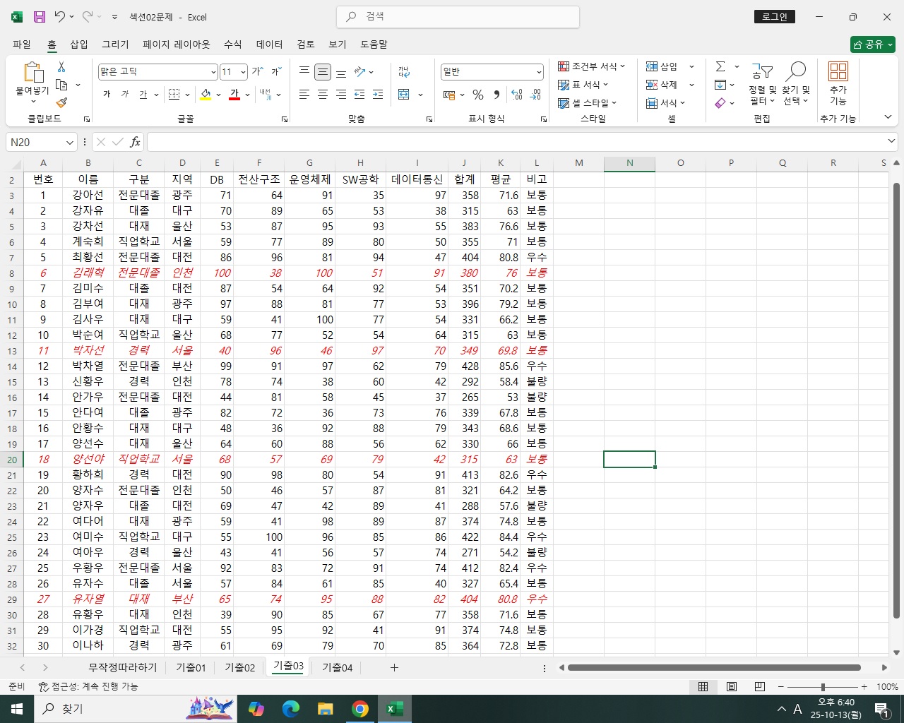 $K4>=70 : K4 셀의 값이 70보다 크거나 값으면 TRUE
